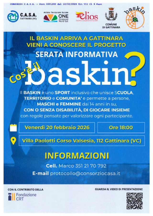 Si trasmette l'invito alla serata informativa sull'attività di Baskin organizzata dal Consorzio C.A.S.A. di Gattinara.